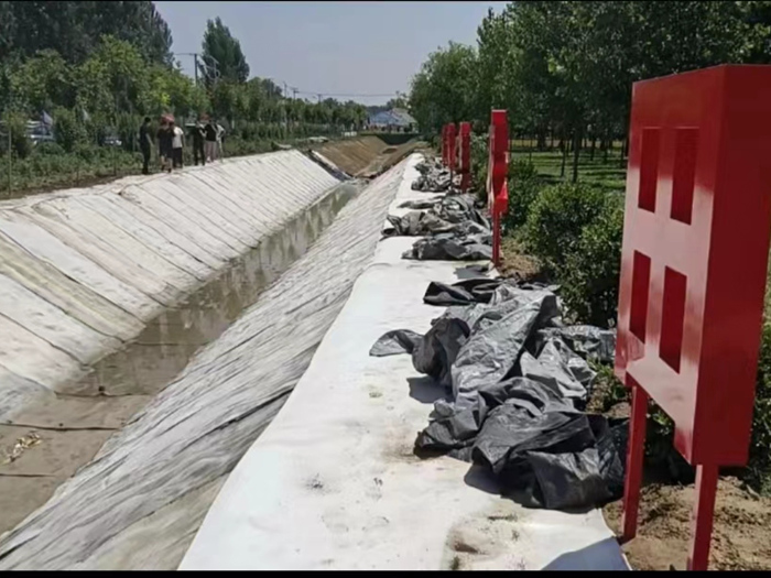 技術要點:鋪設前需去除尖銳雜物,手工鋪設2人即可作業(yè),也可采用吊車配合人工作業(yè),根據工程內容選擇合適的鋪設方式, 水利工程鋪設時需順水流方向,從上游往下游施工。